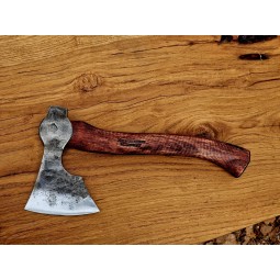 Mały brodacz to ręcznie kuty, kompaktowy toporek obozowy inspirowany skandynawską tradycją. Lekki, precyzyjny i zwinny — idealny do pracy blisko dłoni. Głowica ok. 500 g, trzonek 320 mm oraz skórzana pochwa w komplecie.