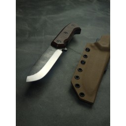 Rękojeść z micarty jutowej zapewnia pewny chwyt nawet w trudnych warunkach, a pochwa z Kydexu gwarantuje bezpieczne i wygodne noszenie w każdej pozycji.