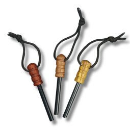 Krzesiwo 8×80 mm z rękojeścią z egzotycznego drewna: Padouk, Wenge, Mahoń lub Denya. Mocna iskra, wygodny chwyt, idealne do bushcraftu i survivalu.